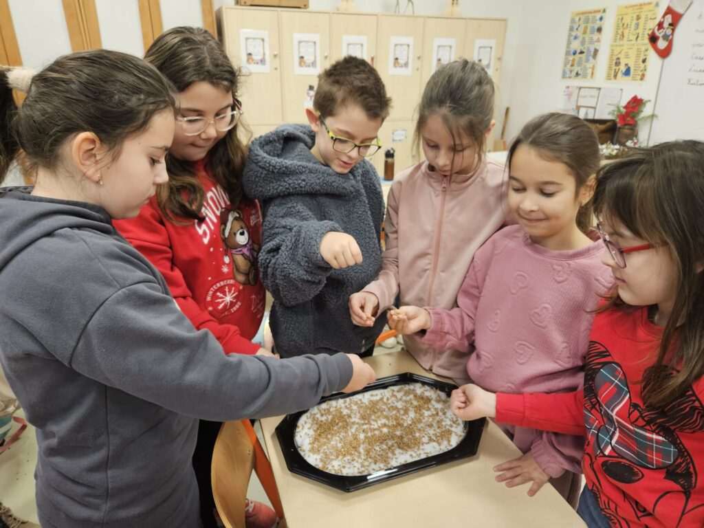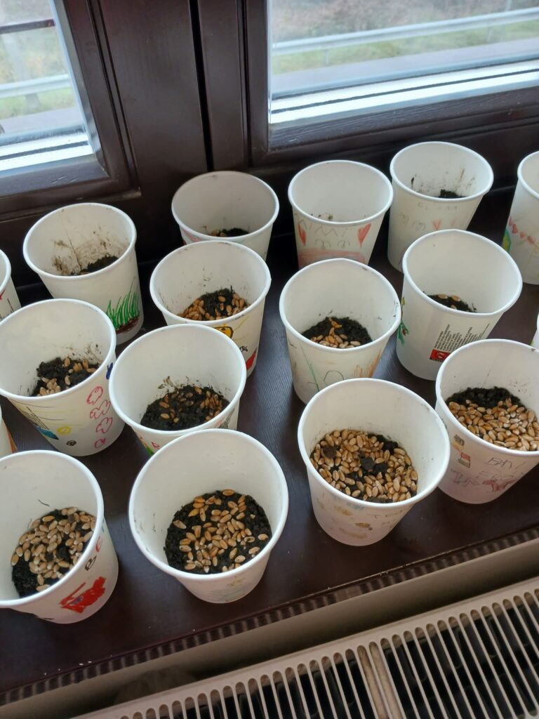 Iskolánkban is életre keltettük ezt a szép szokást: diákjaink nagy örömmel és lelkesedéssel vetették el a búzaszemeket. Jó volt látni a figyelmet, a kíváncsiságot és az izgatott várakozást, ahogy elkészültek a „kis cserepek”.