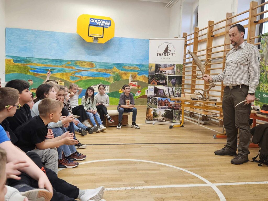 Igazán különleges élményben volt részünk: a természet beköltözött a tornaterembe, és a gyerekek testközelből ismerkedhettek meg az erdei vadakkal, eszközökkel és élővilággal. 🦌🌳
