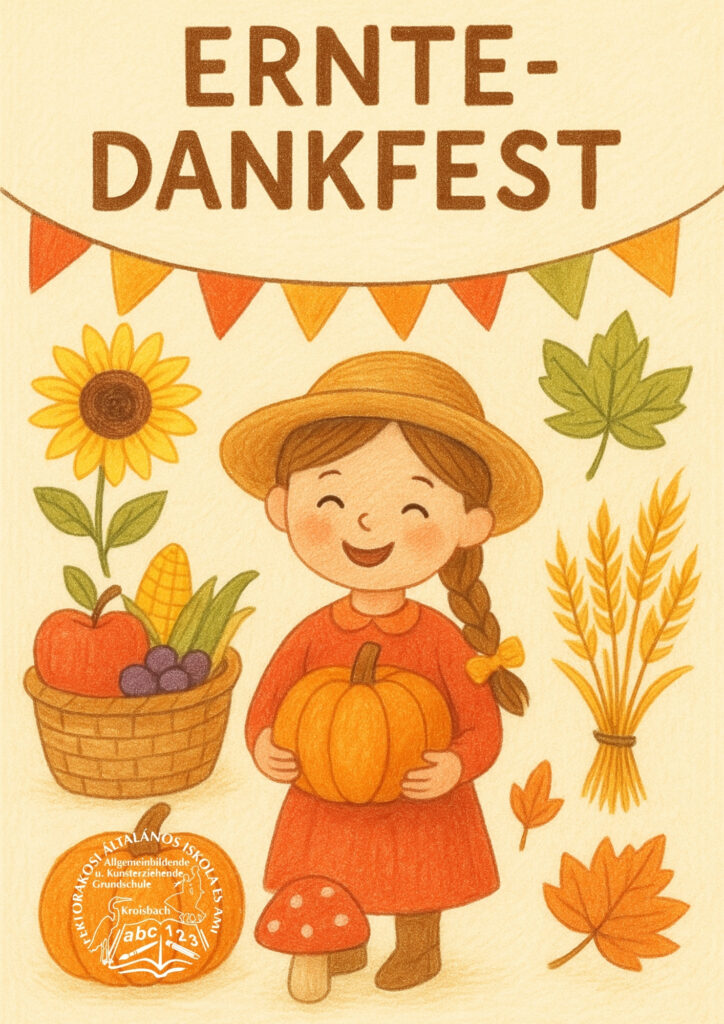 Hunyadi-Búzás Éva tanárnő vezetésével a 3. osztályos tanulók egy különleges projekt keretében ünnepelték az Erntedankfestet. A gyerekek lelkesen készültek: éneket tanultak, saját képeket alkottak, és közben játékosan ismerkedtek a német nyelvvel és a hagyományokkal.