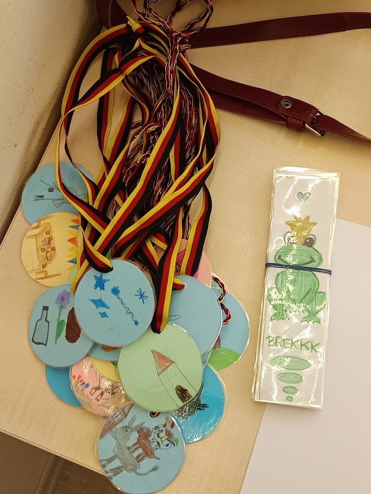 Als Überraschung schenkte jedes Schulkind den Kindergartenkindern ein selbstgemachtes Lesezeichen und eine Medaille, über die sich die Kleinen sehr freuten.