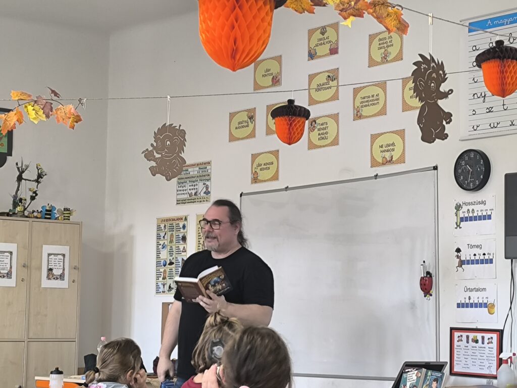 Iskolánk és a DÖK vendége volt október 13-án a népszerű, ismert gyermekkönyv író, Kovács Attila alias Holden Rose, aki az értő olvasás fontosságáról és annak sokoldalúságáról beszélt a motivációs előadásaiban.  Az író a gyermekek tudásának bővítése céljából nagyon izgalmas előadásokat tartott: a felsősöknek Hunyaditól az iPhone-ig címmel. A hallgatóság ez alkalommal egy képzeletbeli történelmi és irodalmi utazáson vehetett részt. Az alsósok pedig ötleteikkel aktívan szerepeltek az Előadás az olvasásról című foglalkozásokon.